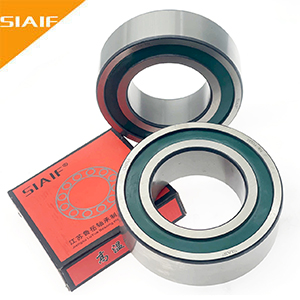 固態(tài)油脂單列深溝球軸承,是滾動軸承中最具有代表性的結構,用途廣泛。除承受徑向負荷之外,還可以承受二個方向的軸向負荷。摩擦力矩小,最適用于要求高速旋轉,低噪音,低振動之用途。這種軸承,除開放式之外,還有加鋼板防塵蓋的軸承,加橡膠密封圈的軸承,或者在外圈外徑上附有止動環(huán)的軸承。一般多采用鋼板沖壓保持架。深溝球軸承, 大尺寸的軸承則使用銅合金車制保持架。用于高速旋轉時,也使用車制保持架。