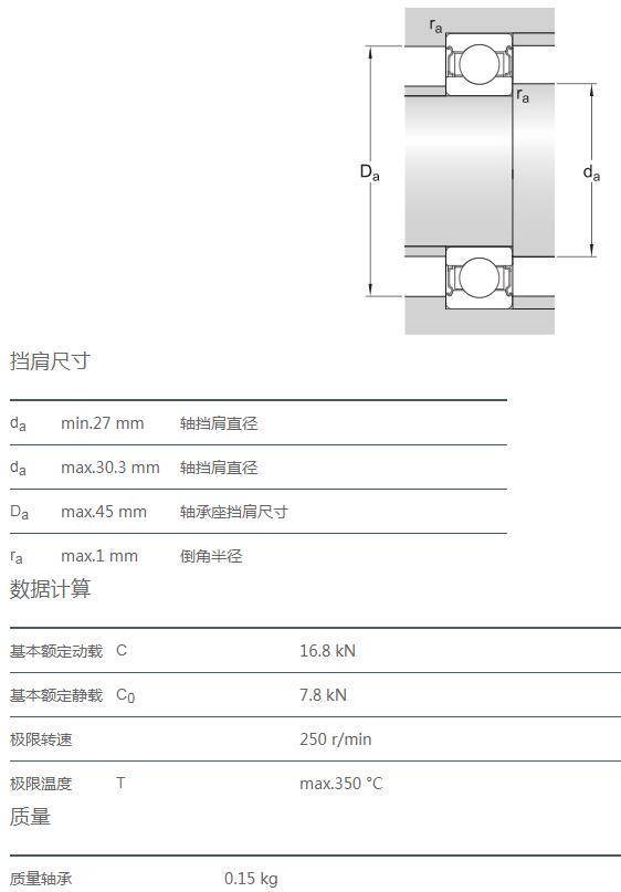 VA201用于高溫應(yīng)用的軸承,配有沖壓鋼保持架、經(jīng)軸承的套圈和滾動(dòng)體經(jīng)過錳磷化處理,徑向游隙為多倍 C5 游隙,且使用聚亞烷基二醇(PAG)/石墨的混合物進(jìn)行潤(rùn)滑