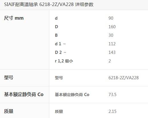 6218-2Z/VA208 耐高溫深溝球軸承后綴|SIAIF耐高溫軸承樣本