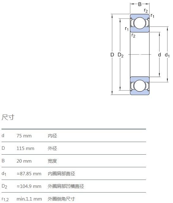 SIAIF不銹鋼深溝球軸承 S6015-2Z 詳細(xì)參數(shù)