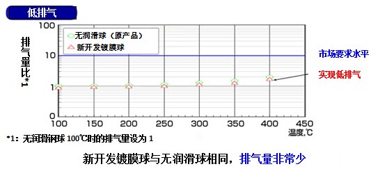 SIAIF憑借在鋼球上采用高溫下耐久性優(yōu)越的固體潤(rùn)滑鍍膜技術(shù),開發(fā)了與原來(lái)的無(wú)潤(rùn)滑軸承同樣的低排氣特性,但壽命可延長(zhǎng)至其8倍的固體潤(rùn)滑鍍膜軸承。