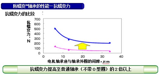 1. 抗蠕變力是普通軸承的2倍以上(公司內(nèi)比較)